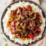 I always sprinkle chopped green onions and a few sesame seeds over the finished dish. It’s such an easy touch that adds fresh color and a bit of crunch. If you want to get fancy, fresh cilantro also pairs beautifully.