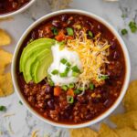 Absolutely! You can simmer this chili on the stovetop in a large pot over low to medium heat for about 45 minutes to an hour, stirring occasionally. Just keep an eye on the liquid level and add water or broth if it starts looking too thick. This method works great if you’re short on time or don’t have a slow cooker.