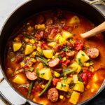 - Kielbasa sausage: Sliced into thick pieces, it adds smoky, savory notes that define this stew’s Texan spirit.