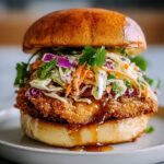 I love pairing this sandwich with simple Asian slaw or crunchy cucumber salad to keep it light and refreshing. Sweet potato fries or classic French fries soaked with a little Sriracha mayo also make a fantastic side, especially if you’re feeding a crowd. The balance of textures keeps the meal fun and satisfying.