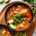 This Thai Red Curry Noodle Soup is a vibrant and flavorful dish combining tender chicken, aromatic red curry paste, coconut milk, and fresh herbs served over delicate rice noodles. Perfectly balanced with savory fish sauce, a hint of sweetness from brown sugar, and a zesty lime finish, this comforting soup is easy to make and perfect for a cozy meal.