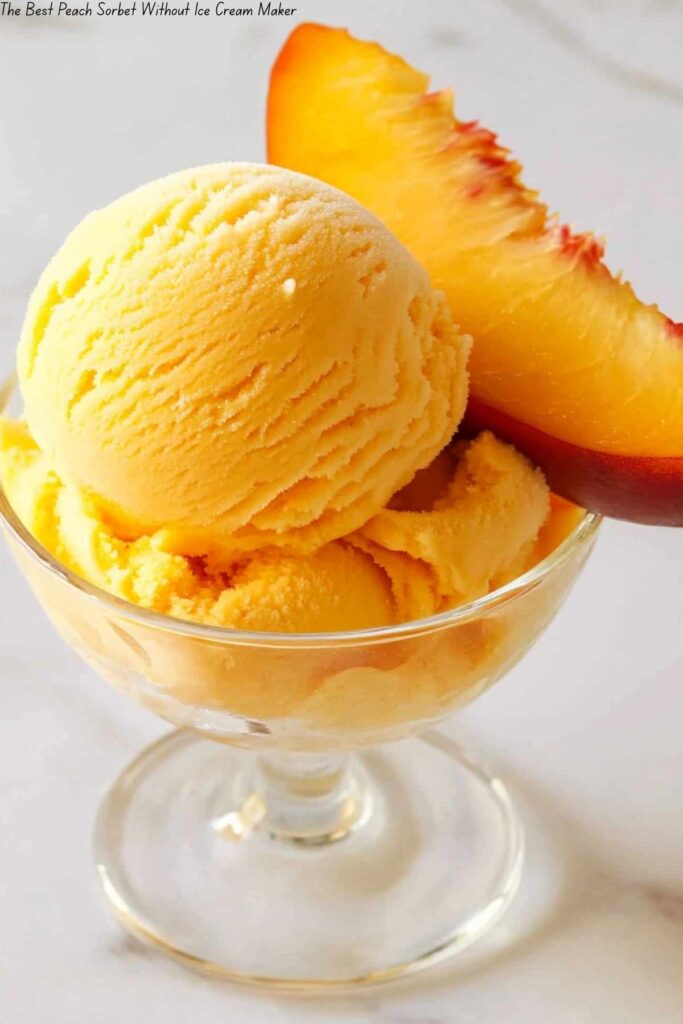 Indulge in the refreshing and fruity taste of homemade peach sorbet without the need for an ice cream maker. This simple recipe guarantees a creamy and luscious dessert that is perfect for hot summer days.