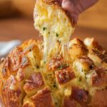 This easy pull apart bread recipe creates a warm, cheesy, and garlicky appetizer perfect for sharing. Rustic crusty bread is stuffed with a mix of mozzarella and cheddar cheeses, then bathed in a homemade garlic butter sauce infused with fresh parsley. The bread is baked until golden and melty, resulting in a delicious combination of crispy crust and gooey cheesy pull-apart pieces that everyone will love.