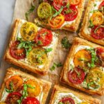 These Tomato Tartlets with Puff Pastry are a delicious and elegant appetizer featuring flaky puff pastry filled with a creamy ricotta and Parmigiano-Reggiano mixture, topped with colorful heirloom tomatoes and fresh basil. Perfectly seasoned and baked to golden perfection, they make a delightful treat for any occasion.