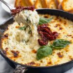 This creamy Tuscan Cheese Dip with Sun-Dried Tomatoes is a rich and flavorful appetizer perfect for any gathering. It combines the smooth richness of cream cheese and sour cream with the bold flavors of sun-dried tomatoes, garlic, spinach, and a blend of mozzarella and Parmesan cheeses for a warm, cheesy dip that pairs perfectly with crusty bread or fresh vegetables.