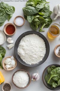 While the dough rises, heat olive oil in a skillet over medium-low heat. Add your thinly sliced onions and a pinch of salt and cook slowly, stirring often, for about 25-30 minutes until deep golden and sweet. This slow caramelizing step is key—it transforms the onions into something irresistibly savory. Toss in the minced garlic towards the last few minutes to keep it from burning, then add fresh spinach, dried oregano, and a pinch of red pepper flakes if using. Cook just until the spinach wilts, then remove from heat and stir in the marinara sauce. Season with salt and pepper to taste.
