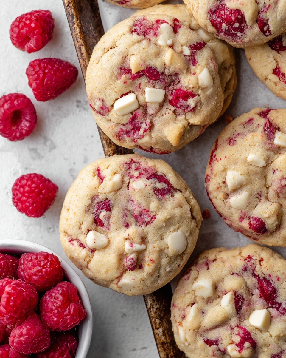 - Dried raspberries instead of fresh: I tried this once, and it gave the cookies a chewier bite with bursts of tangy sweetness, plus it’s an easier option if fresh aren’t available.