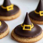 Witches’ Hats are a fun and spooky Halloween treat made with fudge stripe cookies topped with milk chocolate candy kisses. Perfect for parties or as a festive snack!